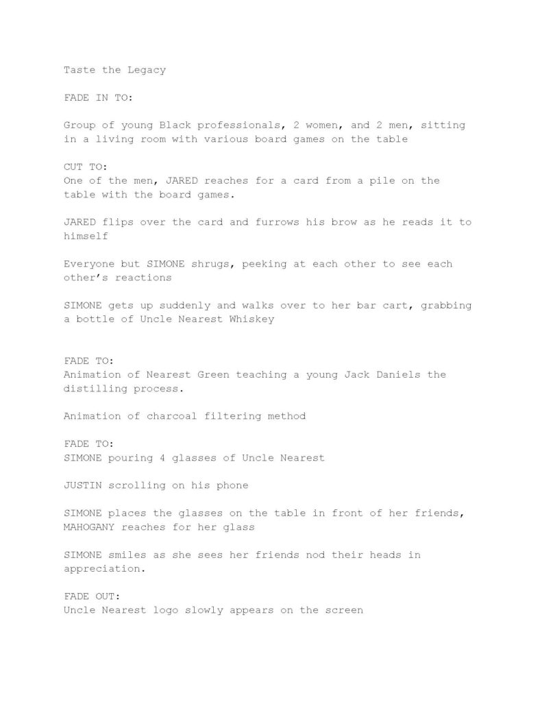 Get mainstream casual drinkers who already have one or two favorite brands they drink at home or out to switch to Uncle Nearest by coming up with a film idea that shows them that there is more to Uncle Nearest than your average whiskey.